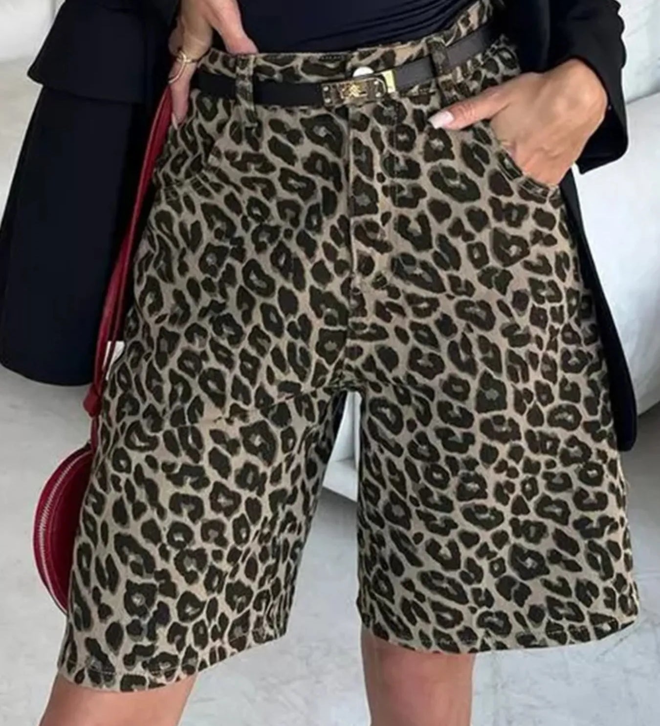 FRANCIÓ | Leopárdmintás rövidnadrág zsebekkel