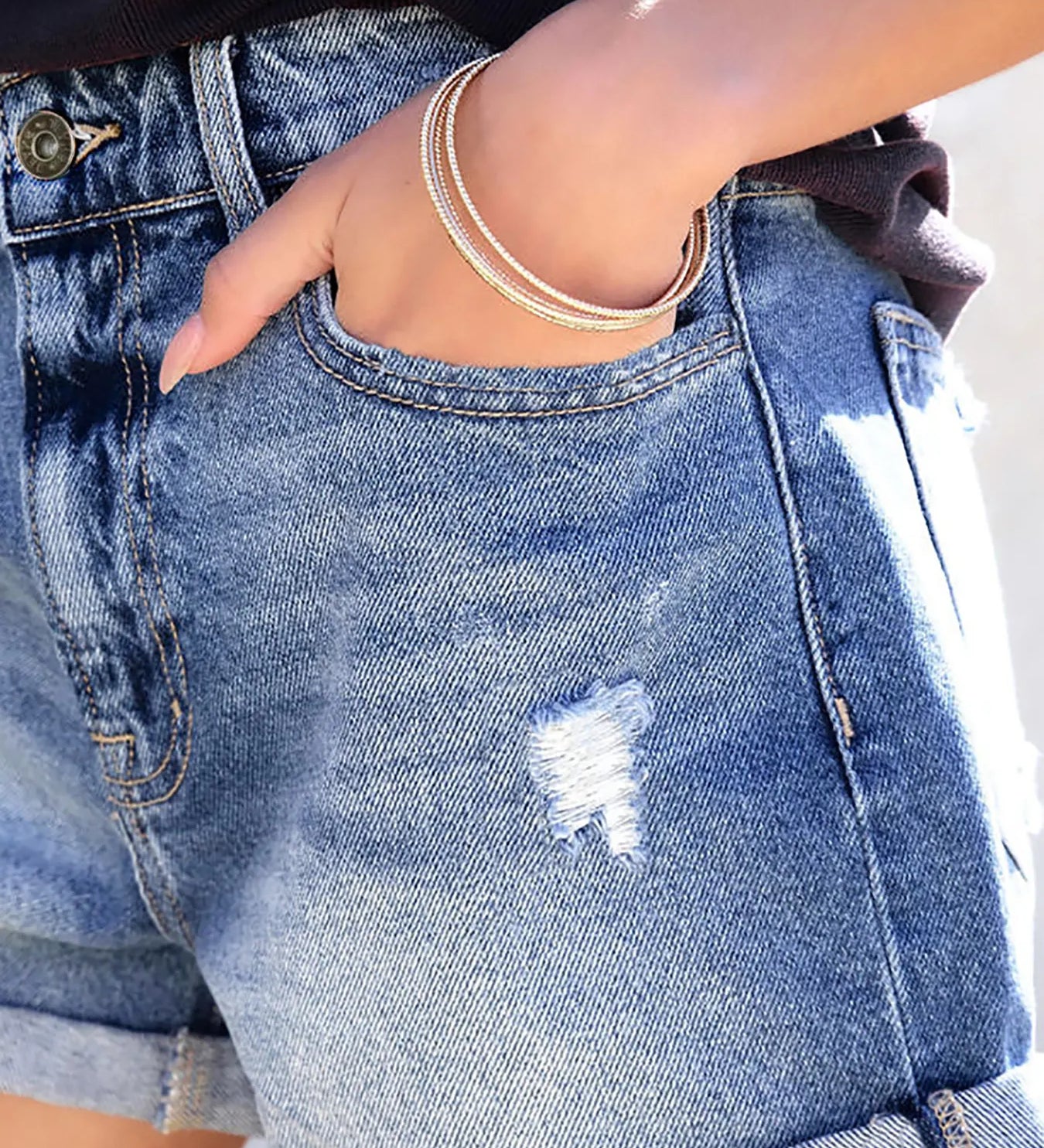 HILDE | Magas derékú, mosott farmer rövidnadrág