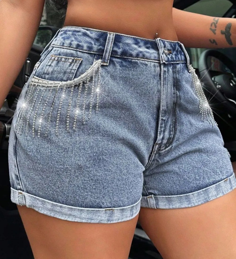 BEATE | Magas derekú, rojtos szárú farmer rövid